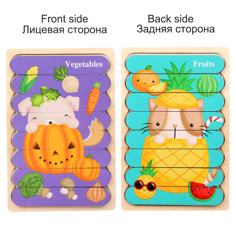 Wooden Puzzle Montessori Double-sided Strip Puzzle Toy For ChildrenFunction:Improve children's cognitive ability, thinking ability and creativity, exercise children's hands-on ability and hand-eye coordination ability.Description:1. Jigsaw puzzles are a good way to improve your baby's manipulative, sensory and observation abilities.
